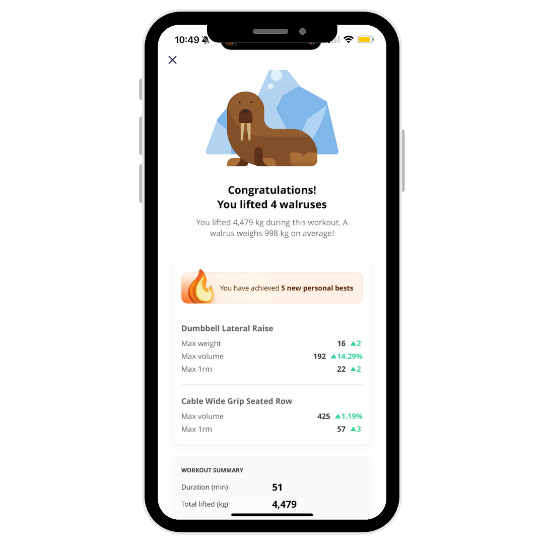Track PBs and unlock fun achievements along the way. Because getting stronger should feel as rewarding as it is empowering.